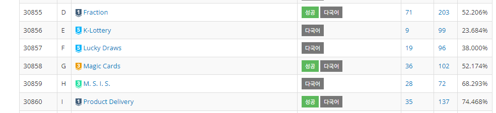우리를 말리게 한 장본인이다. c가 이 문제를 처음보고 구현문제라 하고 코드를 작성하였다. 구현하는데 1시간 가량 걸렸던것같은데 지금 보니 퍼솔이 7분이란게;; 아무튼 D를 구현할 동안 나머지는 각자 풀린 다른 문제들을 읽어보고 있었고 우선적으로 풀어야될 문제가 D, G, I 3개라는 사실을 깨달았다. 테스트 케이스 다 통과하는걸 보고 제출하자고 했는데 틀렸습니다. 가 나오고 이때부터 불안함이 목 뒤를 스쳤다.