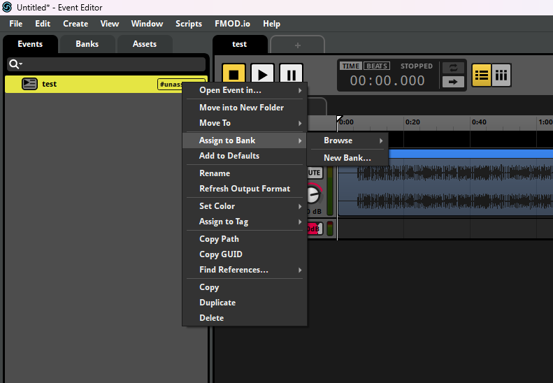 test 우측에 #unassigned라고 나와있는데 이걸 우클릭해서 Assign to Bank를 해줘야 된다. 이것 때문에 Build를 해도 용량이 이상해서 헤맸다.