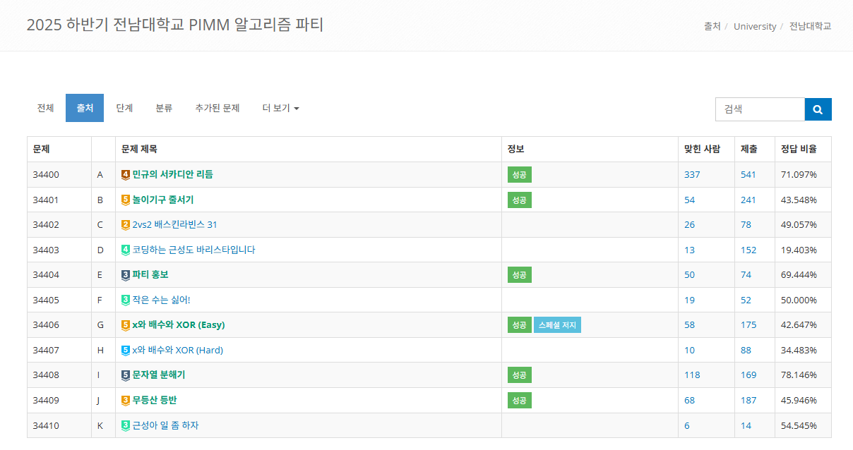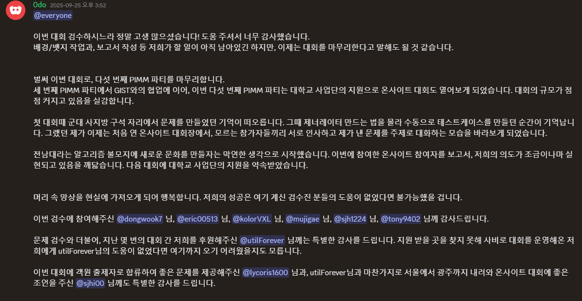 | 2025 상반기 전남대학교 PIMM 알고리즘 파티 후기 (0) | 2025.04.05 |